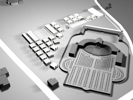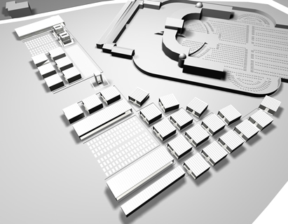 The compositional rules seek to establish a “specular” relationshp between the city of alive people and the city of the deads. For this reason it was decided to adopt a set of orthogonal axes connected to the adjacent urban grid, the two entities enter into communication (physically and visually) between them, they seek for themselves without ever meeting. Two distinct parts but they share one single system: the city. One of the main theoretical assumptions of the project is the idea of considering the existing cemetery as a great object to insert into a set of similar but different sized objects forming a single garden.